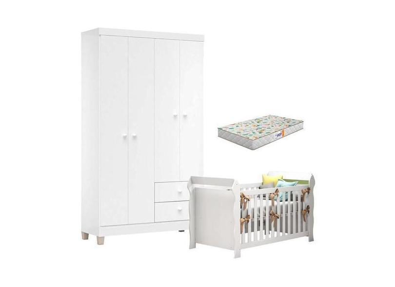 Berço Americano Lara com Colchão Gazin e Guarda Roupa Ternura Baby 4 P