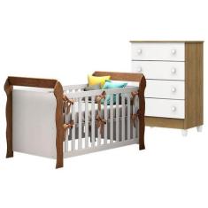 Berço Americano Lara com Cômoda Gaveteiro Mel Flat Branco Acetinado Am