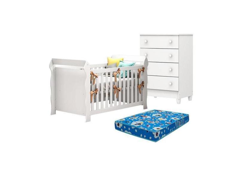 Berço Americano Lara e Cômoda Gaveteiro Mel Flat Branco Brilho com Col