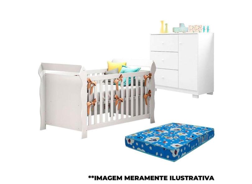 Berço Americano Lara e Cômoda Infantil Duda Branco Brilho com Colchão - Phoenix Baby