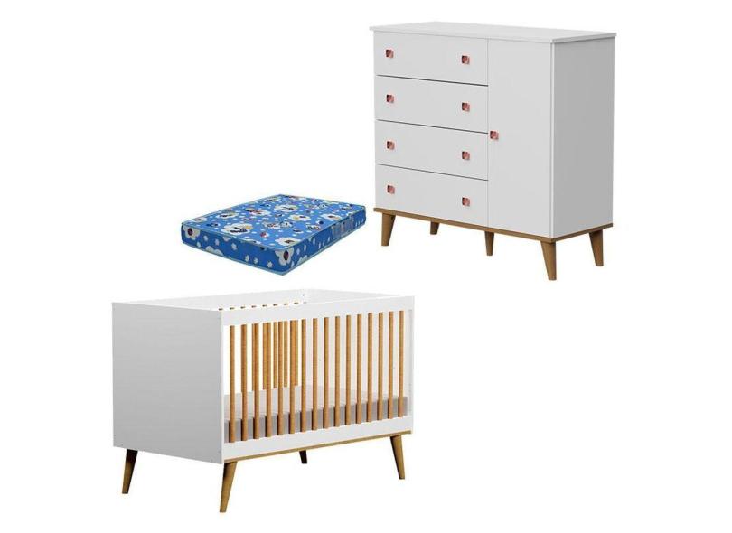 Berço Americano Ligia E Cômoda Fernanda Branco Bétula Com Colchão Ortobom - Carolina Baby