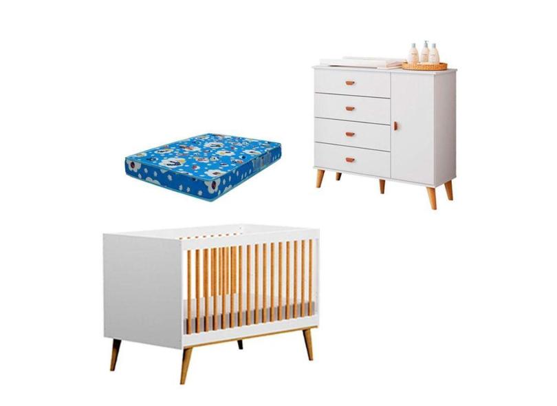 O menor preço encontrado no Brasil para Berço Americano Ligia E Cômoda Infantil Duda Branco Acetinado Bétula Com Colchão Ortobom Móveis atualmente é R$ 1.169,99.