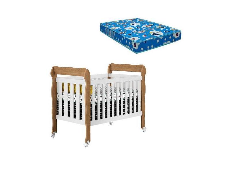 Berço Americano Lila Branco Acetinado Amadeirado com Colchão - Carolin