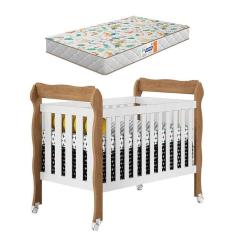 Berço Americano Lila Branco Acetinado Amadeirado com Colchão Gazin - Carolina
