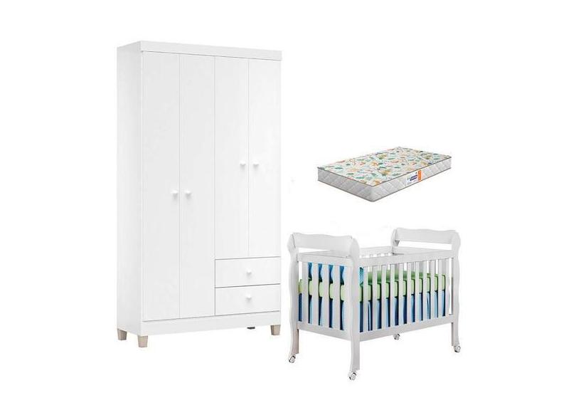 Berço Americano Lila com Colchão Gazin e Guarda Roupa Ternura Baby 4 P