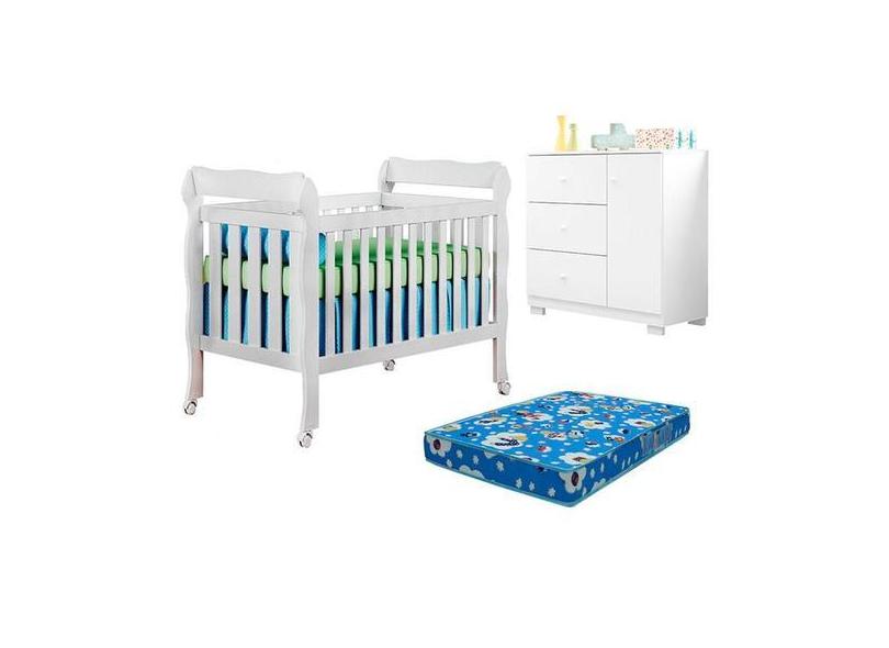 O menor preço encontrado no Brasil para Berço Americano Lila e Cômoda Infantil Duda Branco Brilho com Colchão atualmente é R$ 767,70.