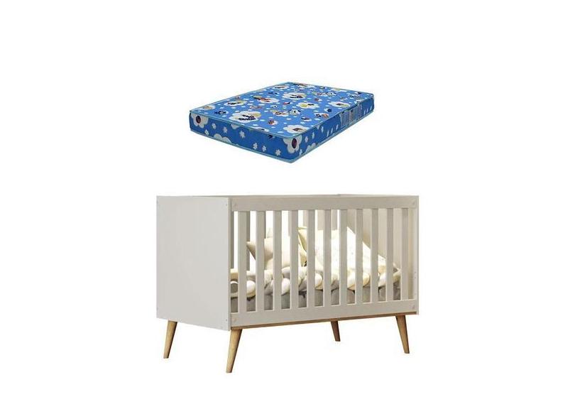 Berço Americano Ludmila Off White Bétula com Colchão Ortobom - Carolin