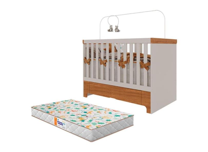 Berço Americano Mini Cama com Gaveta Antonella Off White Caramelo e Colchão Gazin - Canaã