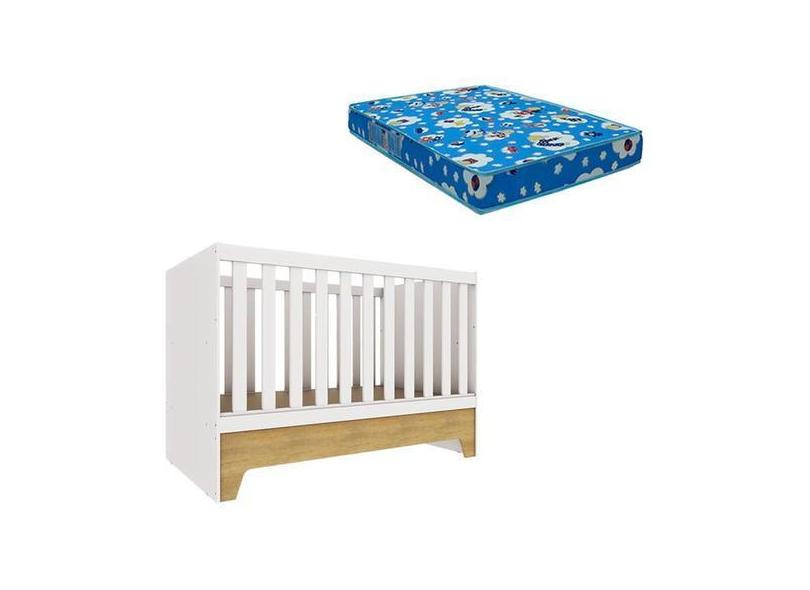 Berço Americano Mini Cama Malu Branco Acetinado Bétula com Colchão Ort