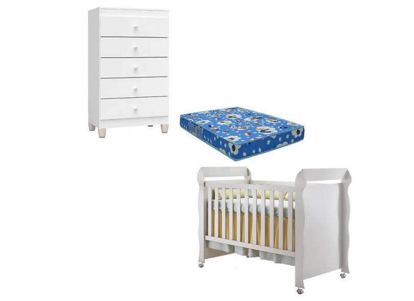 O menor preço encontrado no Brasil para Berço Americano Mirelle com Colchão e Cômoda Gaveteiro Ternura Baby Branco Brilho - Incorplac atualmente é R$ 698,40.