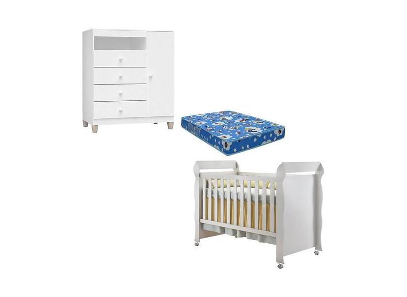Berço Americano Mirelle com Colchão para Berço Americano e Cômoda Infa