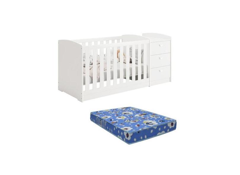 Berço Americano Multifuncional Atlanta com Cômoda 3 Gavetas Branco Fos