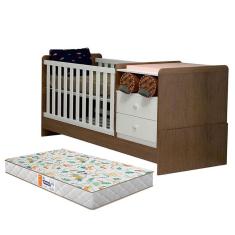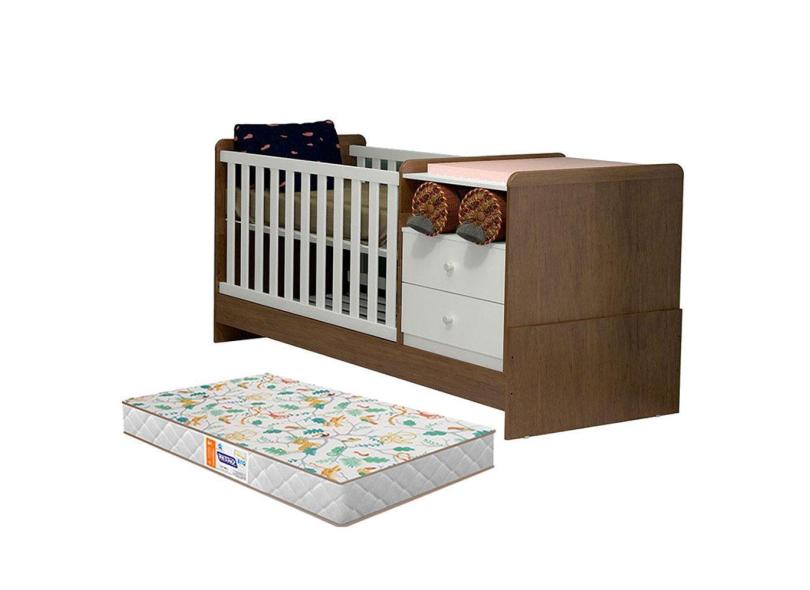 Berço Americano Multifuncional Selena Branco Acetinado Amadeirado com Colchão Gazin - Carolina Móveis