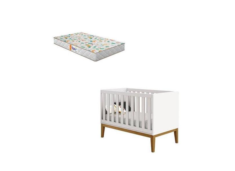 Berço Americano New Classic Branco com Pés Madeira e Colchão Gazin Re
