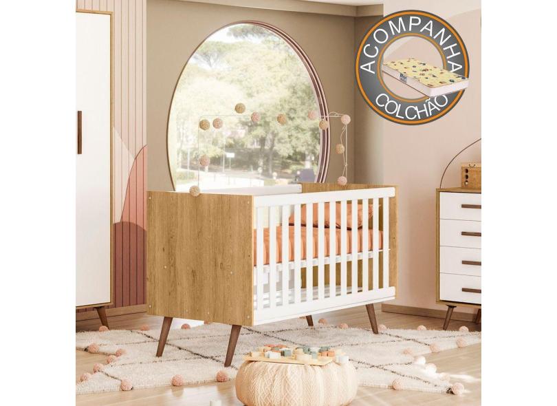 Berço Americano Qencanto Retrô 3820 Qmovi Freijó Branco Acetinado + Colchão Gazin