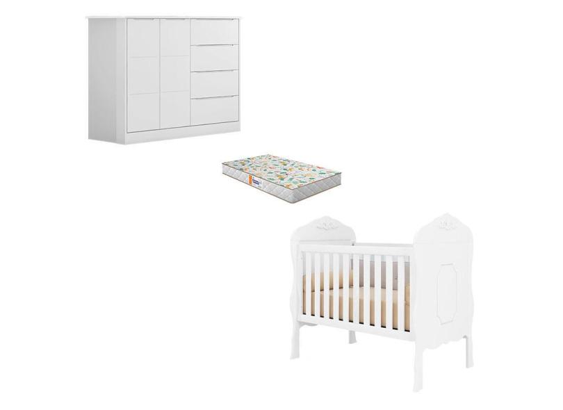 Berço Americano Realeza e Cômoda Infantil Eloá Branco Acetinado com Colchão Gazin - Phoenix Baby