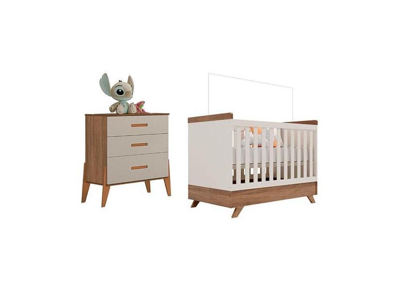 Berço Americano Retro Vitória com Cômoda Gaveteiro Infantil Emilly Off