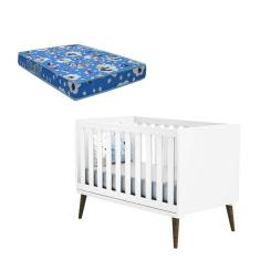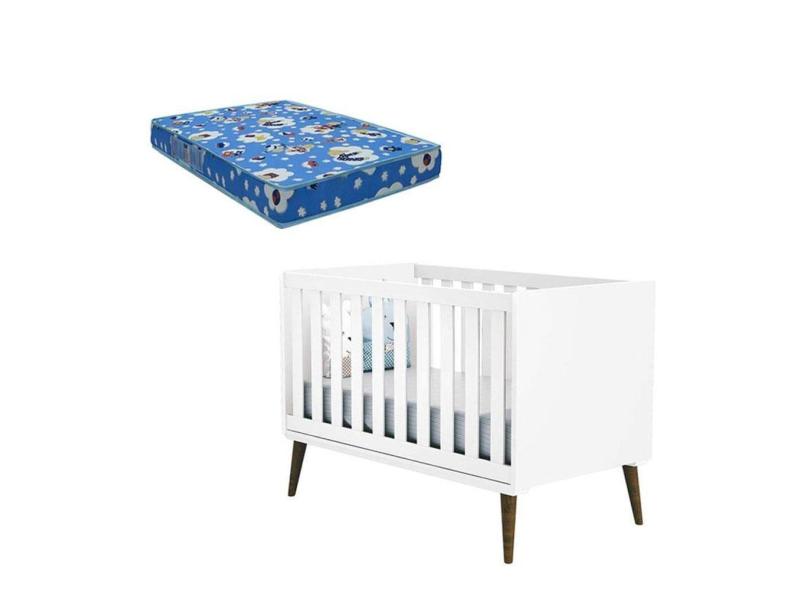 Berço Americano Theo Branco Acetinado com Pés Amadeirados e Colchão - Reller