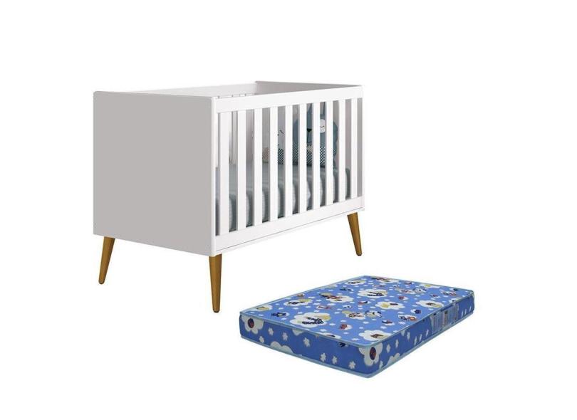 O menor preço encontrado no Brasil para Berço Americano Theo Branco Fosco Pés Amadeirado Com Colchão D18 - Reller Móveis Branco Fosco atualmente é R$ 955,40.