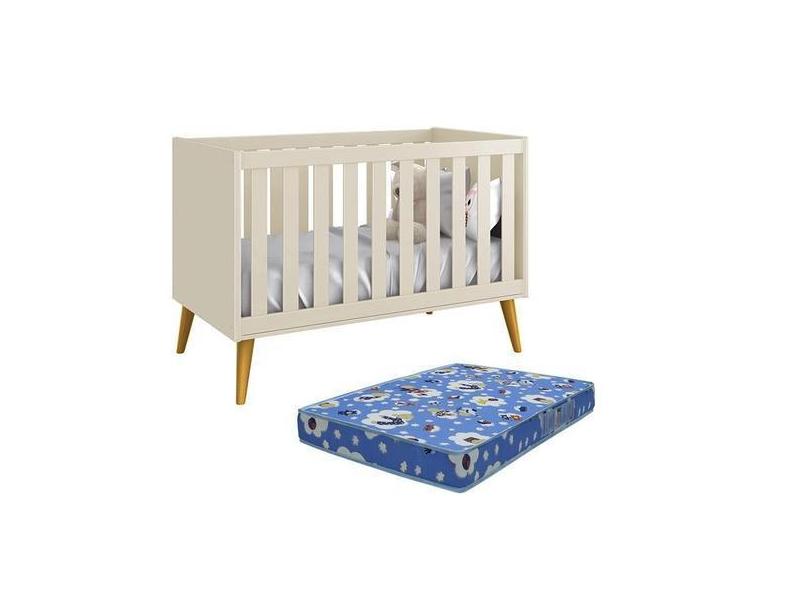 Berço Americano Theo Pés Amadeirado com Colchão D18 - Reller Móveis, A