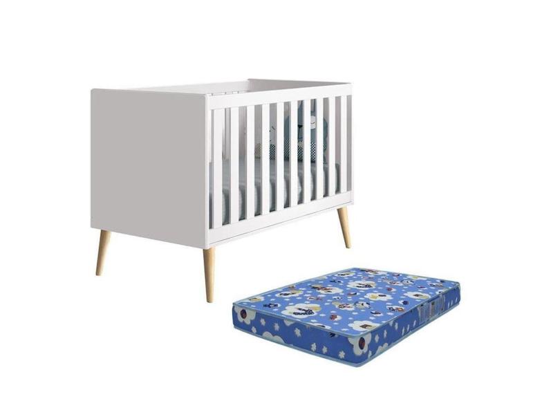 O menor preço encontrado no Brasil para Berço Americano Theo Pés Madeira Natural Branco Fosco Com Colchão D18 - Reller Móveis Branco Fosco atualmente é R$ 955,40.