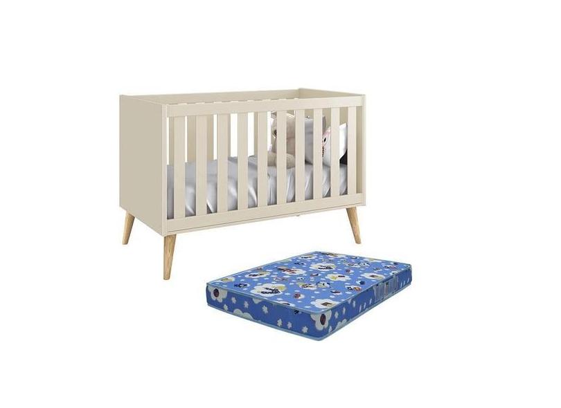 Berço Americano Theo Pés Madeira Natural com Colchão D18 - Reller Móve