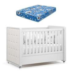 Berço Americano Tutto New Branco Acetinado Capitonê New Boucle E Colch
