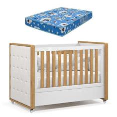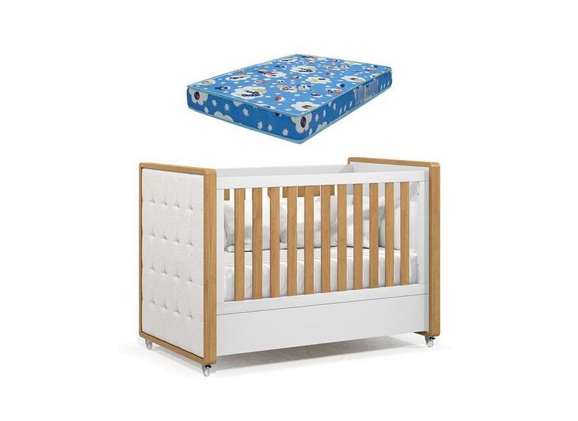 Berço Americano Tutto New Freijó Branco Acetinado com Capitonê New Bou