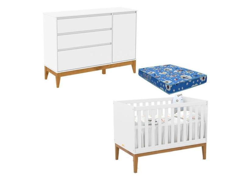 O menor preço encontrado no Brasil para Berço Americano Unique E Cômoda Com Porta Nature Clean Branco Soft Eco Wood Com Colchão Ortobom atualmente é R$ 1.638,08.