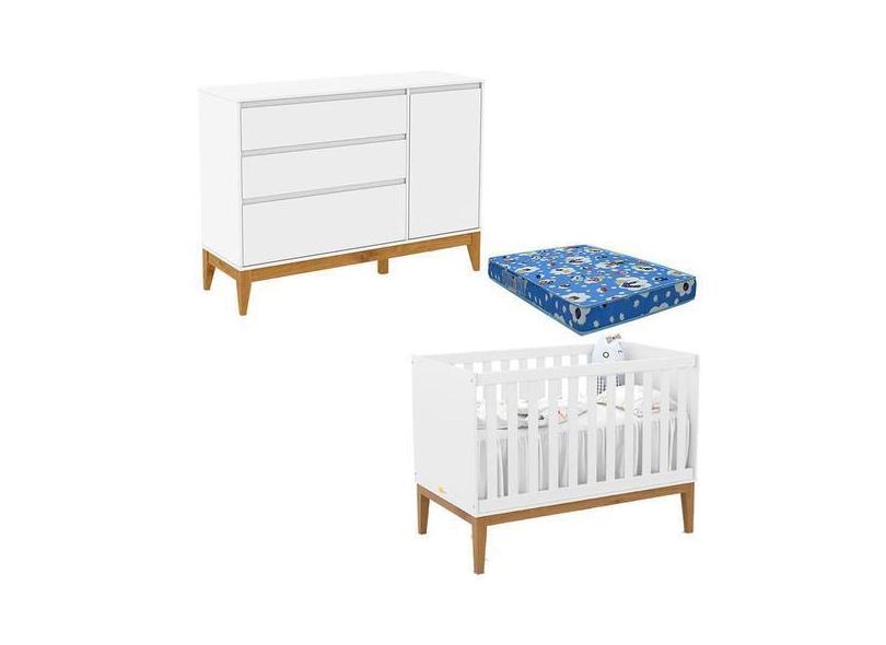 Berço Americano Unique e Cômoda com Porta Nature Clean Branco Soft Eco