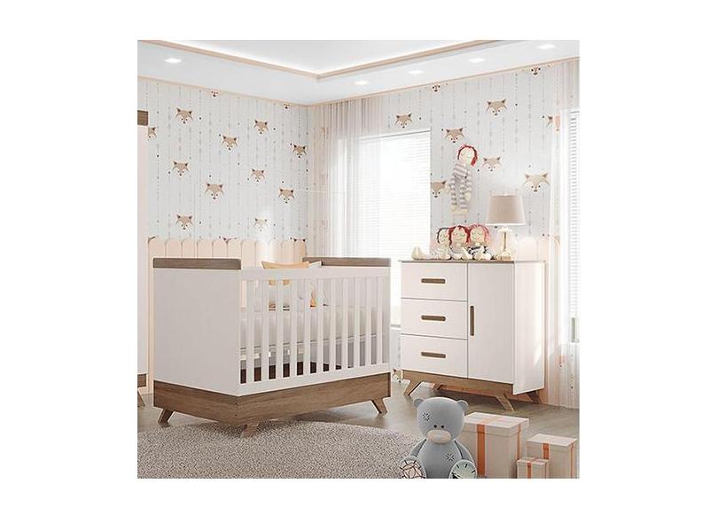 Berço Americano Vitória e Cômoda Infantil Retro Maya Ambiente Off Whit