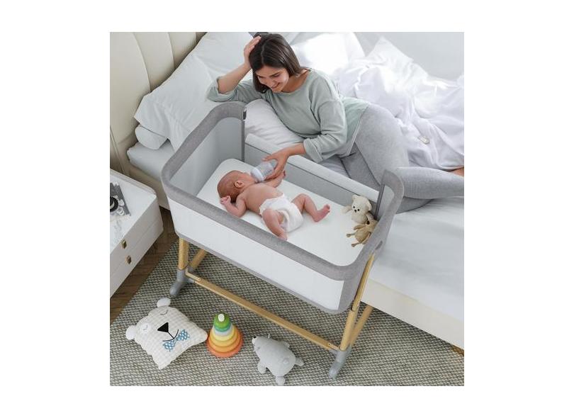 Berço AMKE Bedside Sleeper All Mesh Wood Gran Grey
