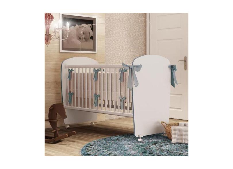 Berço com Rodizio Corujinha Percasa, Branco com Azul