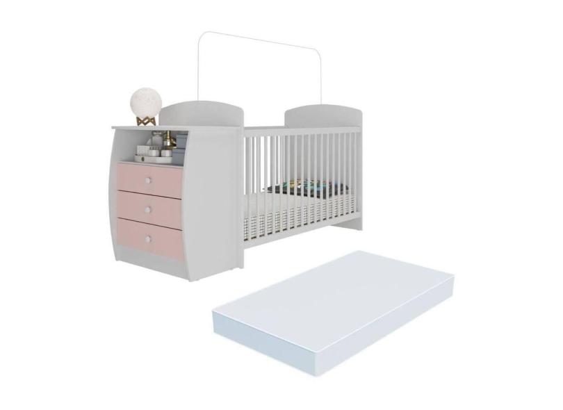 Berço Cômoda Com Colchão Incluso Colinho De Mãe Multimóveis Branco Rosa