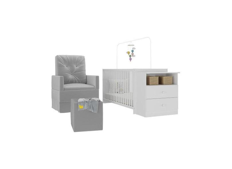 Berço Cômoda com Colchão, Poltrona de Amamentação e Puff Meu Bebê Mult
