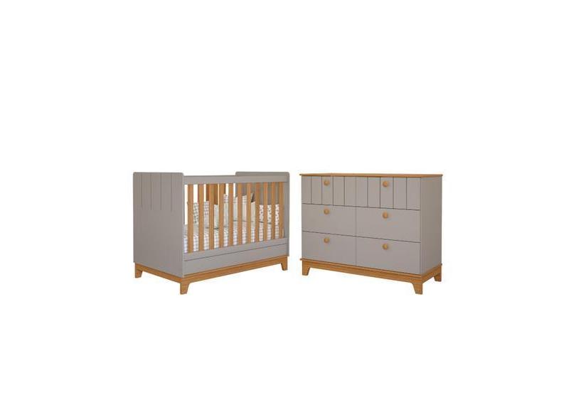 Berço e Cômoda Biscoito Permobili MDF 06 gavetas , Fendi Nature