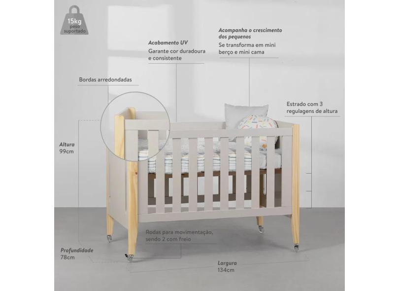 Berço Evolutivo Tom 3 em 1 com Pés Natural - Areia