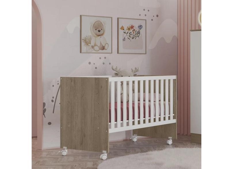 Berço Infantil Doce Sonho Carvalho Rustico Branco qmovi