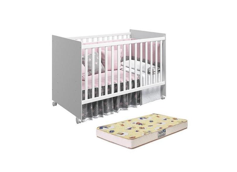 Berço Mel Branco Brilho com Colchão D18 - Reller Móveis, Branco Brilho