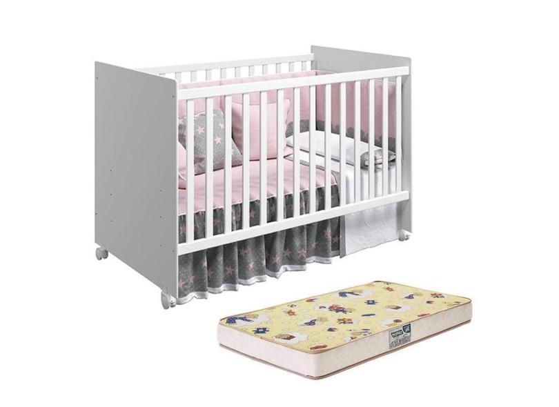 Berço Mel Branco Fosco Com Colchão D18 - Reller Móveis Branco Fosco