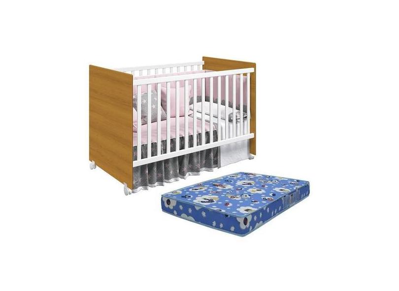 Berço Mel Branco/Savana com Colchão Baby Physical - Reller Móveis, Bra