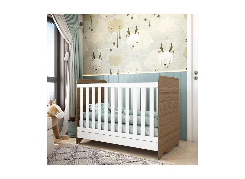 Berço Mini Cama Americano 100% MDF 3 em 1 Ben Móveis Peroba Branco Bri