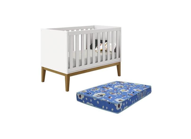 Berço Mini Cama Classic Branco Fosco Pés Amadeirado com Colchão D18 -
