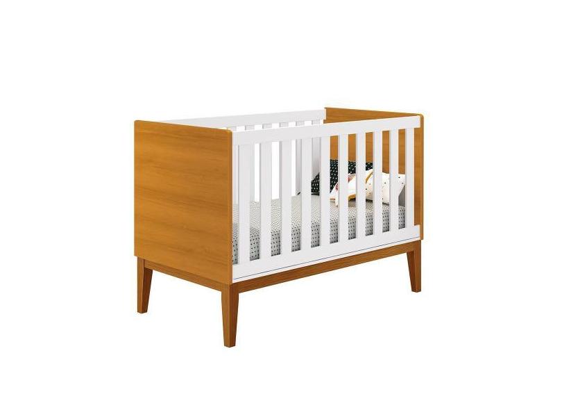 Berço Mini Cama Classic com Pés Amadeirado - Reller Móveis, Branco/Sav