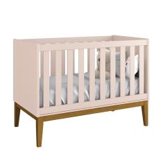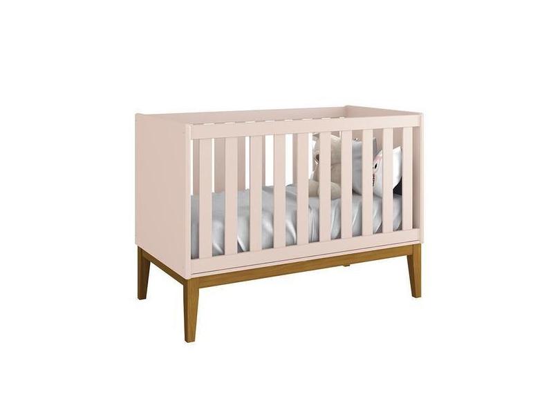Berço Mini Cama Classic Rosa Fosco com Pés Amadeirado - Reller Móveis,