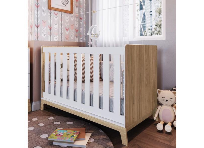 Berço Mini Cama Favo de Mel com Regulagem de Altura - Natural/Branco