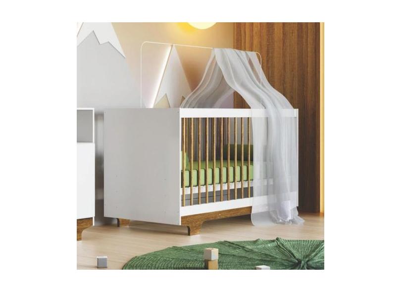 Berço Mini Cama Flocos Tigus Baby, Branco/Amadeirado