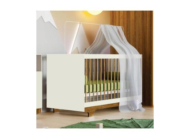 Berço Mini Cama Flocos Tigus Baby, Off White/Amadeirado