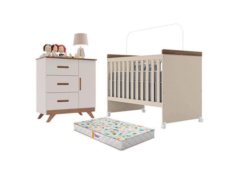 O menor preço encontrado no Brasil para Berço Mini Cama Lívia e Cômaoda Infantil Retro Maya Off White Carvalho com Colchão Gazin - Canaã atualmente é R$ 861,81.
