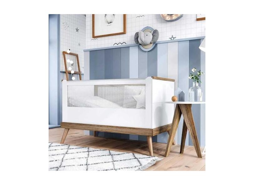 Berço Mini Cama Padrão Americano Canção de Ninar Branco Acetinado com Amêndola Rústica